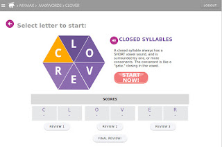 As you can see above, MaxWords helps students build words through learning roots, prefixes, suffixes and syllabication rules. There are 5 modules: CLOVER, Spelling Rules, Prefixes and Suffixes, Latin Roots and Greek Roots. There are multiple subsections within each module.