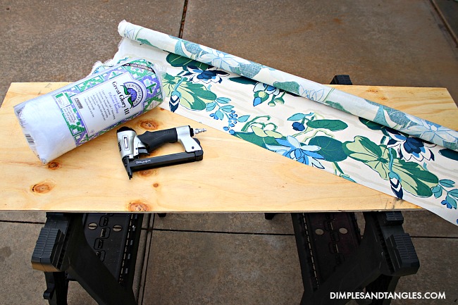 This project kind of reminded me of making an upholstered headboard, but was a lot quicker and easier to work with.  You'll just need a few supplies-