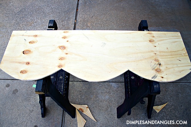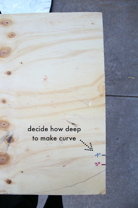 I liked the slightly deeper curves of the 4" mark, so that's the line I used as a guide to cut out the curve with my jigsaw.