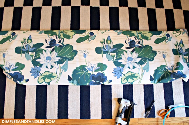 Flip it over and make sure everything is straight and centered.  If not, remove a staple where needed and adjust your fabric.