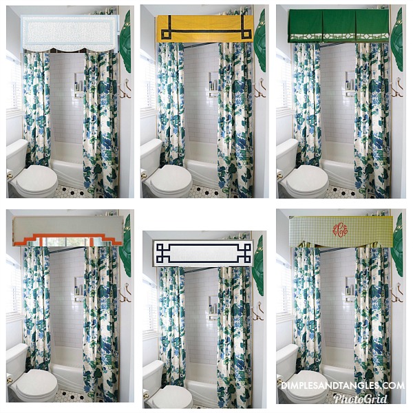 First, I did some quick photo editing to "see" some of the shapes and styles I was considering in the space.  I really liked several of them, but the scalloped design stole my heart from the beginning.  I'll share how we created that one, but if you like one of the straight rectangle styles with decorative trim this project would be even easier!