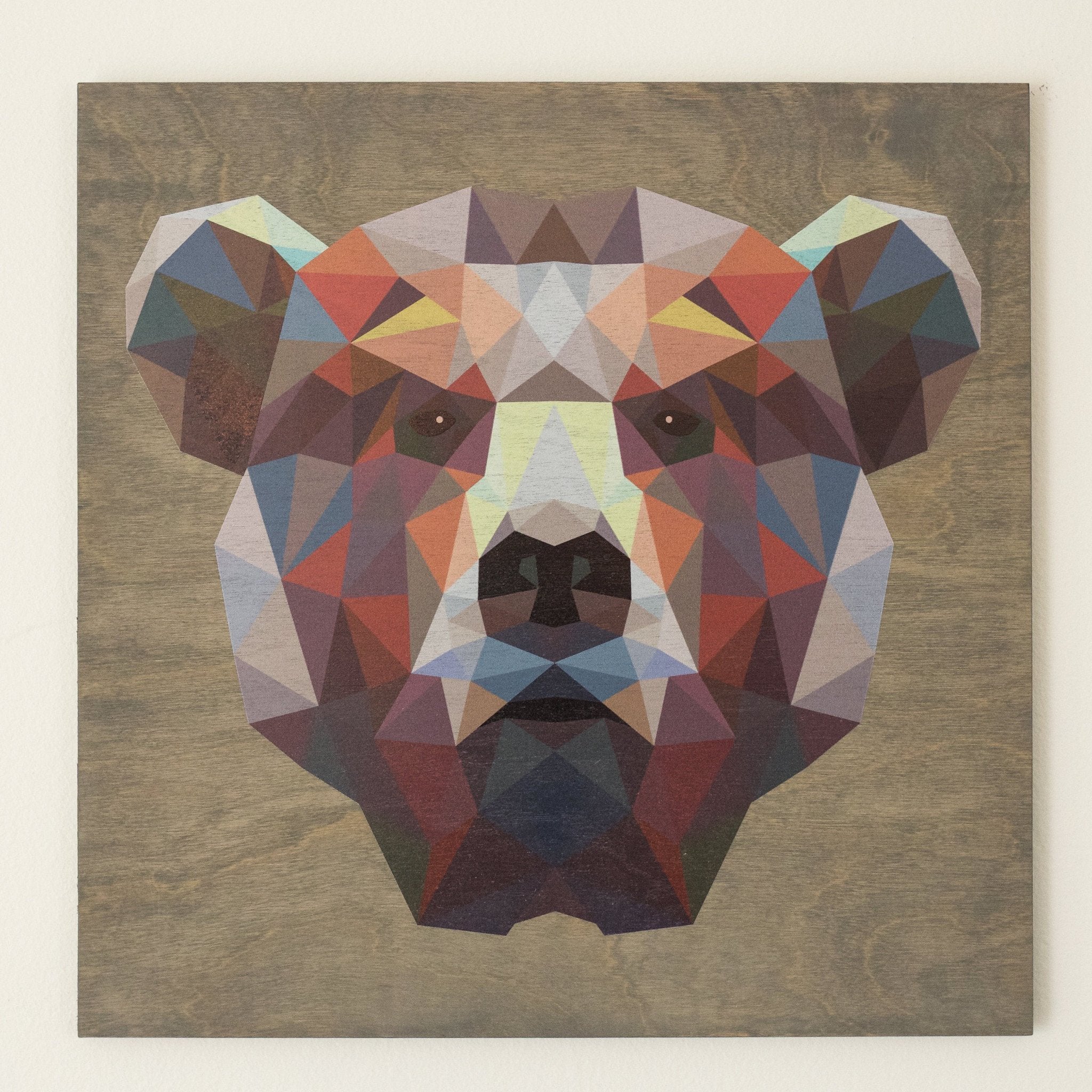 Part of our Geometric Animals Collection, "Geometric Bear" is available on plain Birch or a Mahogany or Grey Stain in a variety of wood canvas sizes.