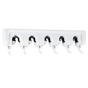 1 x Mop Broom Holder Wall Mounted Storage Rack with 5 Ball Slots and 6 Hooks for Closet Rakes Broom Garden Garage Tool Storage (White)