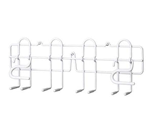 The Broom & Mop Holder from ClosetMaid is easy to mount on walls or doors and ideal for garages, utility and laundry rooms. It has eight strong wire hooks with white rubber tips and two catches.