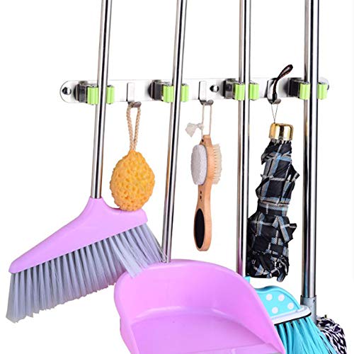 This multi-function mop holder has a fashionable design, and has features of saving space and organize mops. It serves as a good helper for keeping the mops and other stuff well organized and tidy. The 3 hooks offer additional options.